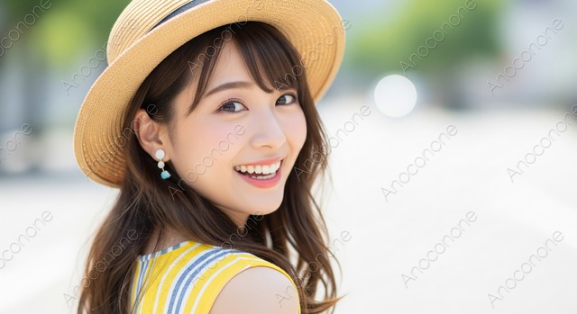 画像素材:南国の青い海と島を背に微笑むドット柄水着姿の女性 陽光が降り注ぐ美しいビーチにて、カメラを振り返りながら優しく微笑む女性の姿を収めた一枚です。背景には水平線まで続く鮮やかなブルーの海と、特徴的な形をした島が映り込み、南国リゾートの開放感あふれる雰囲気を表現しています。女性が着用している水着は、深いネイビーに白いドット柄が施された上品なデザインで、肩から背中にかけて流れる大きなフリルが華やかな印象を与えています。自然光を浴びた肌の質感や、風に揺れる黒髪が、屋外撮影ならではのリアルで爽やかな空気感を作り出しています。ピントを人物に合わせつつ、背景を適度にぼかすことで、青い海と空の色彩がより一層際立つ構図となっています。全体的に明るく清潔感のあるトーンでまとめられており、夏のバカンスや旅行、ファッション関連のコンテンツに馴染みやすい仕上がりです。砂浜の白さと海の青が調和した、静かで穏やかな夏のひとときを感じさせる素材となっています。 この画像はAIによって生成された後、ソフトウェアによって高品質化されています。 画像サイズ:2816 x 1536 px 画像ファイル形式:JPEG ※ご購入前に「ABOUT」から詳細をご確認ください。 https://anoconone.base.shop/about