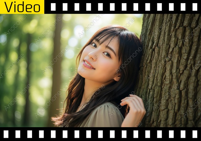 動画素材:緑豊かな森の中で、太い大樹の幹に優しく背を預けて佇む女性の姿を捉えています。木々の隙間から柔らかな木漏れ日が差し込み、女性の表情を温かく照らし出しています。女性は落ち着いたアースカラーの衣装を身にまとい、穏やかな笑みを浮かべながら静かにこちらを見つめています。背景の森は美しくぼかされており、新緑の鮮やかさと光の粒が幻想的な雰囲気を演出しています。風に吹かれてわずかに揺れる髪や、樹皮の質感までが精細に描写されており、自然との一体感を感じさせる構成です。全体的にナチュラルで清潔感のあるトーンに統一されており、視聴者に深い安らぎとリフレッシュした気分を与えます。静寂の中に生命の息吹を感じさせるような、情緒あふれる映像表現が特徴となっています。環境保護やオーガニック製品、メンタルヘルスに関連するプロモーション映像に最適です。 この動画はAIによって生成された後、ソフトウェアによって高品質化されています。 サイズ:4K(3840 x 2160px, 長さ8秒, 60フレーム/秒) ファイル形式:MP4(オーディオなし) ※ご購入前に「ABOUT」から詳細をご確認ください。 https://anoconone.base.shop/about