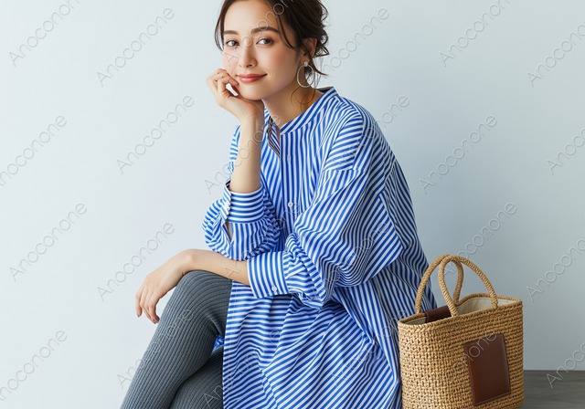 画像素材:夕暮れの砂浜を背景に振り返り微笑む三つ編み姿の女性 穏やかな夕刻の光が差し込む海岸沿いで、堤防に腰掛けながら優しく振り返る女性を捉えたポートレートです。背景には、波打ち際が白く輝く美しい砂浜と、淡い色彩に染まり始めた空が広がり、一日の終わりを感じさせる静かな時間が流れています。女性は白地にネイビーのストライプ柄が入った爽やかなワンピースを身に纏い、一束にまとめた三つ編みのヘアスタイルが、清潔感と上品な印象を与えています。横顔から覗く柔らかな微笑みと、夕日に照らされた肌の質感が調和し、見る人に安心感とどこか懐かしいような情緒を感じさせる構図となっています。全体的に落ち着いたトーンで構成されており、過度な装飾を排した自然体の美しさが際立ちます。観光地のプロモーションや、ライフスタイルを提案するブログ、夏の思い出をテーマにしたウェブコンテンツのメインビジュアルなど、幅広い媒体での活用が期待できます。波音だけが聞こえてくるような、心安らぐ静寂な風景を切り取った画像素材です。 この画像はAIによって生成された後、ソフトウェアによって高品質化されています。 画像サイズ:2816 x 1536 px 画像ファイル形式:JPEG ※ご購入前に「ABOUT」から詳細をご確認ください。 https://anoconone.base.shop/about