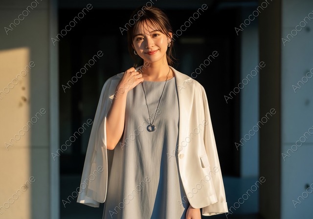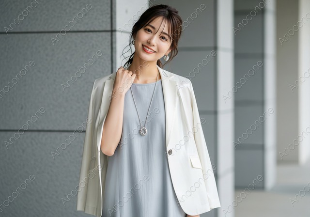 動画素材:柔らかな春の日差しの中で髪を整え微笑む女性 淡い桜色が背景に溶け込むような、春の街角で撮影されたポートレート風の動画素材です。女性は上品な白いブラウスにグレーのカーディガンを羽織り、片手でそっと髪を整えながら、カメラに向かって優しく微笑んでいます。背後に広がる並木道は美しくぼかされており、春特有の穏やかで温かな空気感が強調されています。耳元で揺れるパールのイヤリングが顔周りを華やかに彩り、彼女の透明感のある肌や柔らかな表情をより引き立てています。そよ風に吹かれて細い髪がわずかに揺れる様子が、映像に心地よいリズムと臨場感を与えています。光の当たり方が非常に滑らかで、女性の繊細な表情の変化まで詳細に記録されています。春のファッション、お出かけ、新しい生活の始まりをテーマにしたプロモーション映像や、美容・ライフスタイル関連の広告など、幅広いシーンに調和する高品質な映像です。被写体の魅力を最大限に活かした清潔感のあるカットは、視聴者に安心感と好印象を与えます。春の新作アイテムや季節のキャンペーンを彩るメインビジュアルとして活用いただけます。 この動画はAIによって生成された後、ソフトウェアによって高品質化されています。 サイズ:4K(3840 x 2160px, 長さ8秒, 60フレーム/秒) ファイル形式:MP4(オーディオなし) ※ご購入前に「ABOUT」から詳細をご確認ください。 https://anoconone.base.shop/about