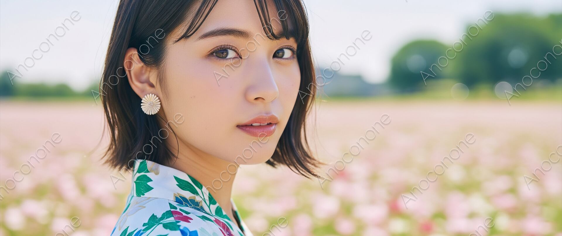 動画素材:満開の桜並木を背景に花柄の服で佇む女性 淡いピンク色の桜が満開に咲き誇る並木道で、華やかな花柄のワンピースを身にまとった女性を捉えた動画素材です。背景の桜は美しくぼかされており、春の訪れを感じさせる柔らかな光と色彩が映像全体を包み込んでいます。女性はカメラを優しく見つめながら、少し照れたような純粋な微笑みを浮かべており、その場に流れる穏やかな時間を象徴しているようです。胸の前で手を組む仕草や、時折見せる控えめな表情の変化が、視聴者に清楚で上品な印象を与えます。花びらが舞い散るような春の空気感と、女性の透明感のある肌の質感が絶妙に調和し、非常に高い完成度のポートレート映像となっています。自然な光の階調が服の細かな模様や髪の毛一本一本を鮮明に描き出しており、情緒的な雰囲気を演出しています。お花見のシーズンをテーマにした広告制作や、春のファッション、ビューティー関連のプロモーション、さらにはSNS向けのショート動画など、季節感を大切にしたいあらゆる映像制作において理想的な素材です。春の華やかさを強調したいブランディング映像に活用いただけます。 この動画はAIによって生成された後、ソフトウェアによって高品質化されています。 サイズ:4K(3840 x 2160px, 長さ8秒, 60フレーム/秒) ファイル形式:MP4(オーディオなし) ※ご購入前に「ABOUT」から詳細をご確認ください。 https://anoconone.base.shop/about