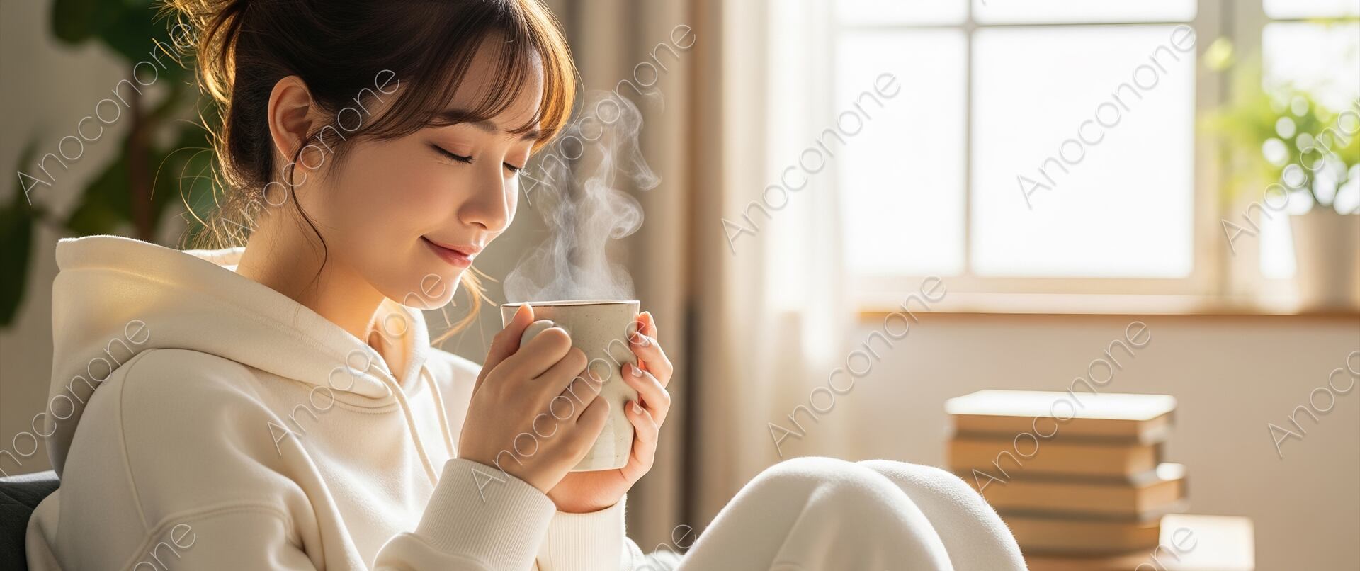 動画素材:自然光が差し込む部屋で椅子に座り微笑む女性 明るい日差しが差し込む清潔感のある室内で、木製の椅子に腰掛けた女性がカメラを見つめて微笑む様子を捉えた動画素材です。女性は白いリブニットとデニムパンツというカジュアルな装いで、リラックスした雰囲気を纏っています。片手を頬に添え、穏やかな表情で自然な笑みを浮かべる彼女の姿からは、日常のひとときを切り取ったような温かみが感じられます。背景には、風に揺れる白いカーテンや、緑豊かな観葉植物が配置されており、シンプルながらも心地よい空間を演出しています。窓から差し込む光が女性の髪や肌を柔らかく照らし、映像全体に透明感と自然な明るさをもたらしています。女性の瞬きや、髪がわずかに揺れる動きが、映像に柔らかな空気感を与えています。ライフスタイル提案、住宅、あるいはリラクゼーションをテーマにしたコンテンツなど、幅広い映像制作に活用できる汎用性の高い映像です。自然な雰囲気で親しみやすさを演出したいプロモーション映像に活用いただけます。 この動画はAIによって生成された後、ソフトウェアによって高品質化されています。 サイズ:4K(3840 x 2160px, 長さ8秒, 60フレーム/秒) ファイル形式:MP4(オーディオなし) ※ご購入前に「ABOUT」から詳細をご確認ください。 https://anoconone.base.shop/about