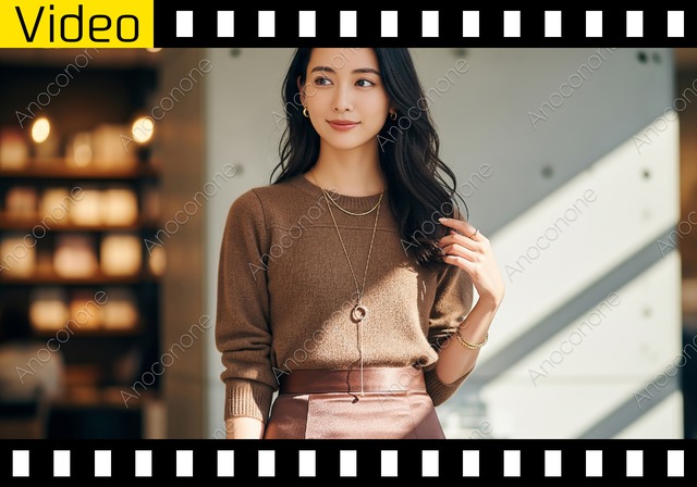動画素材:落ち着いた色合いのニットと光沢のあるスカートを合わせ、秋の訪れを感じさせる装いで佇む女性の映像です。窓から差し込む柔らかな光が、彼女の艶やかな黒髪や繊細なアクセサリーを美しく際立たせ、知的な気品を演出しています。髪にそっと触れるしなやかな指先の動きや、遠くを見つめる穏やかな表情が、視聴者にゆったりとした時間の流れを感じさせます。洗練された都会的なライフスタイルや、高品質なファッションブランドのプロモーション、または季節の変わり目をテーマにした情緒的な広告制作に最適な、高級感あふれる素材です。 この動画はAIによって生成された後、ソフトウェアによって高品質化されています。 サイズ:4K(3840 x 2160px, 長さ8秒, 60フレーム/秒) ファイル形式:MP4(オーディオなし) ※ご購入前に「ABOUT」から詳細をご確認ください。 https://anoconone.base.shop/about