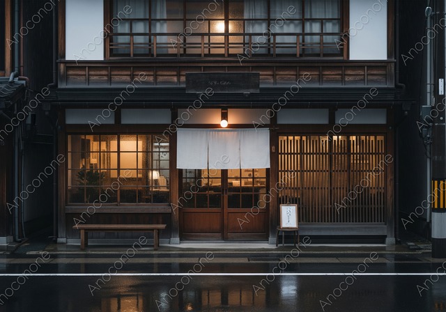 画像素材:雨に濡れた路面に店内の灯りが美しく反射する、情緒豊かな古民家カフェの外観画像です。伝統的な木造建築の質感と、白い暖簾から漏れる温かな光が、静寂の中にどこか懐かしく落ち着いた雰囲気を醸し出しています。格子戸やベンチといった細部までこだわりを感じさせる店構えは、都会の喧騒を忘れさせる隠れ家のような空間を演出します。しっとりとした空気感と日本の美意識が融合したこのビジュアルは、旅のメディアやライフスタイル雑誌、和モダンをテーマにした広告デザインに最適です。訪れる人の心を癒やすような、質の高い落ち着いた空間をアピールしたいクリエイターにおすすめの一枚です。 この画像はAIによって生成された後、Topaz Photoによって超高画質化されています。 画像サイズ:2560 x 1792 px 画像ファイル形式:JPEG ※ご購入前に「ABOUT」から詳細をご確認ください。