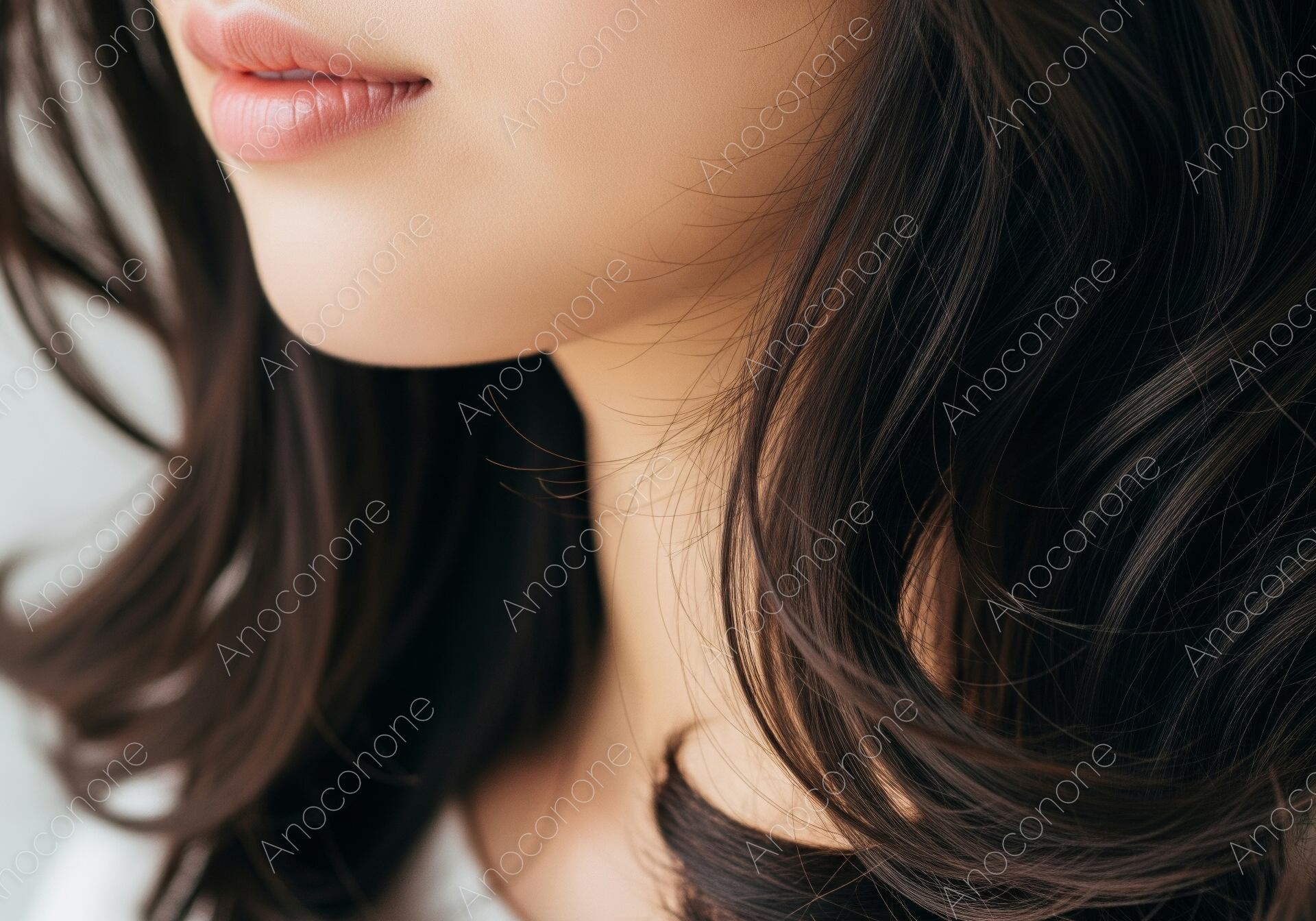 画像素材:明るい屋外の光の中で、美しく整えられたボブヘアの毛先と、健康的な血色感のある口元にフォーカスしたビューティーフォトです。陽の光を透かして輝く髪の質感が、日々の丁寧なヘアケアと潤いをリアルに表現しています。内側にふんわりと巻かれた毛先の動きが、軽やかで清潔感のある女性らしさを引き立てます。あえて目元を写さない構図を採用することで、視聴者の視線は自然と「髪のまとまり」や「肌のきめ細かさ」へと向けられ、美容意識を刺激する仕上がりとなっています。シャンプーやトリートメント、ヘアオイルのプロモーションはもちろん、リップメイクやスキンケア製品の広告、また「陽射しに負けないヘアケア」をテーマにした美容記事のアイキャッチなどに最適な、爽やかで高品質な一枚です。