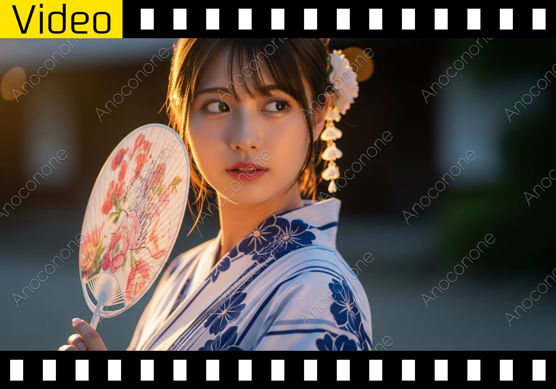 動画素材:夕暮れ時の柔らかな光に包まれた情緒豊かな街並みで、涼しげな浴衣を身に纏った女性が団扇を手に優雅に佇むシーンを捉えています。髪には繊細な花飾りが添えられ、日本の夏の美しさと静寂を見事に表現した高品質な映像です。背景のボケ味と暖かなライティングが、女性の清廉な美しさをより一層際立たせています。落ち着いた和の雰囲気や、夏の風物詩をテーマにしたプロモーション動画、観光ガイドなどのメインビジュアルとして、視覚的なインパクトを求める制作関係者の方に最適な素材です。