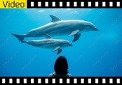動画素材:深く透き通ったブルーの世界で、仲睦まじく寄り添いながら泳ぐ親子のイルカを捉えた幻想的な映像です。巨大な水槽越しにその神秘的な光景を静かに見つめる女性の後ろ姿が、視聴者をまるでその場にいるかのような没入感へと誘います。水の揺らぎと柔らかな光が織りなす空間は、日常の喧騒を忘れさせる圧倒的な癒やしと安らぎを与えてくれるでしょう。水族館のプロモーション、観光広告、メンタルヘルスやリラクゼーションをテーマにしたコンテンツ制作において、深い感動を呼ぶ背景素材として非常に価値の高い一作です。
