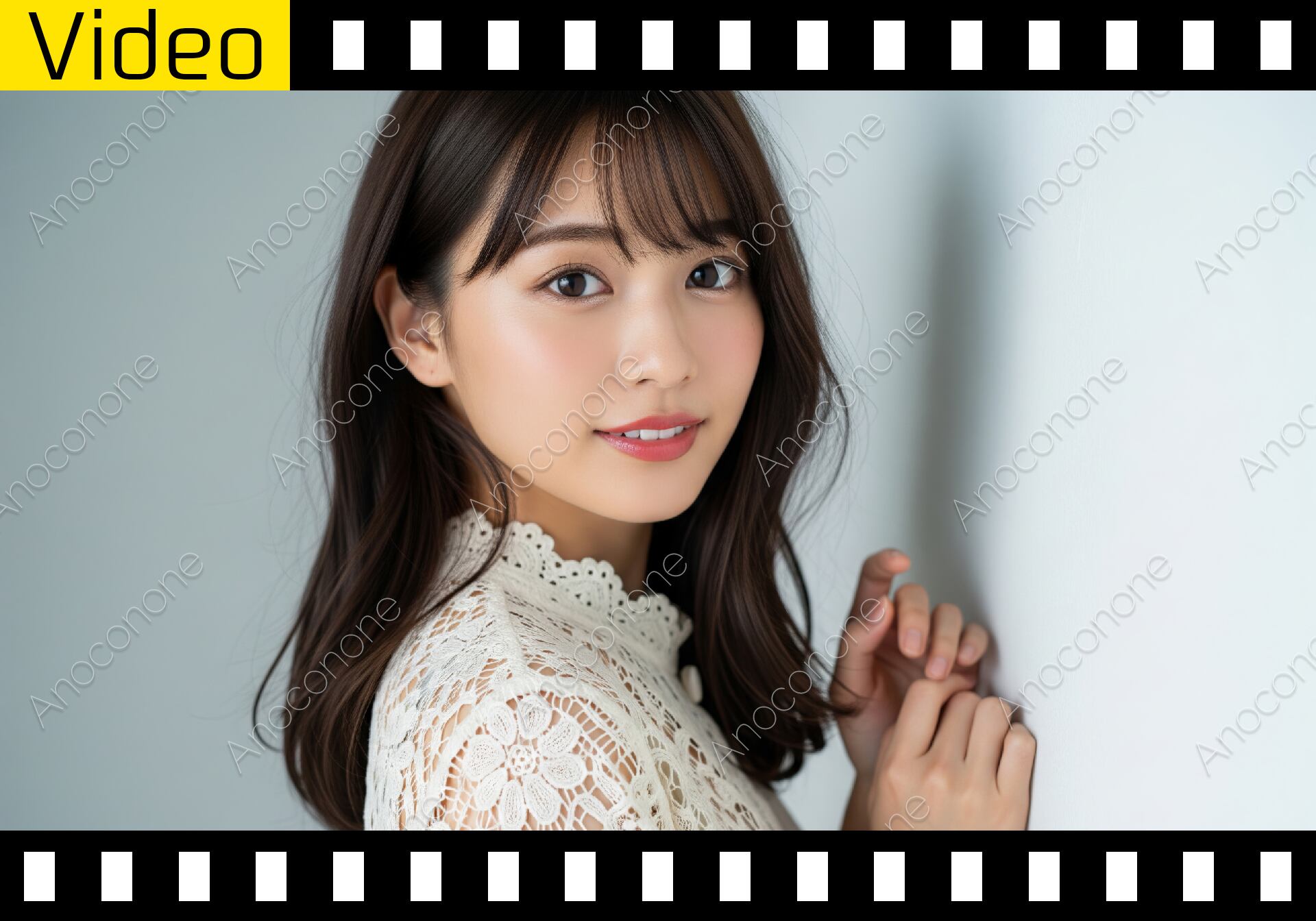 動画素材:細やかな刺繍が施されたクロシェレースのブラウスを身に纏い、柔らかな光が差し込む壁際で静かに佇む女性の姿を捉えた高品質な映像です。透け感のあるレースの質感が彼女の持つ清楚な雰囲気を引き立て、カメラをじっと見つめるまっすぐな瞳と、控えめに浮かべた微笑みが視聴者の心に深く印象を残します。洗練された清潔感と上品な美しさが画面全体から漂い、日常の何気ない瞬間をドラマチックに演出しています。美容・コスメのプロモーションや、大人の女性向けファッションブランドのイメージビデオ制作に最適な素材です。