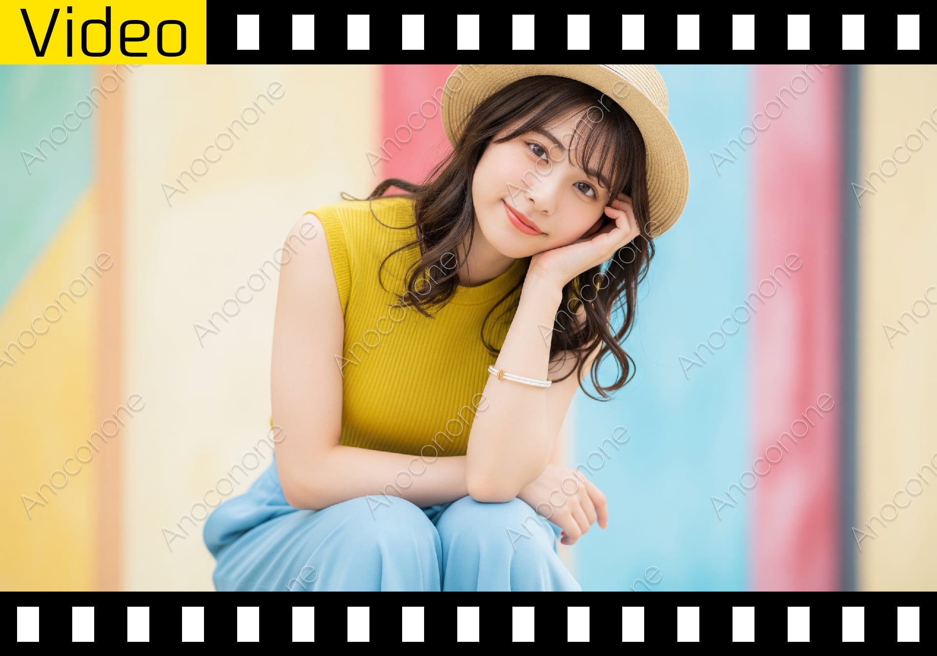 動画素材:カラフルな背景をバックに、ストローハットと鮮やかなマスタードイエローのトップスを纏った女性が、優しく微笑みかける爽やかなシーンです。柔らかな自然光が彼女の透明感を引き立て、夏の穏やかな昼下がりを感じさせます。風に揺れる髪とリラックスしたポージングが、視聴者に心地よい癒やしと開放感を与えます。高精度なディテールにより、肌の質感や衣服の素材感までリアルに再現されており、ライフスタイルや旅行、ファッション関連のプロモーションに最適な映像です。