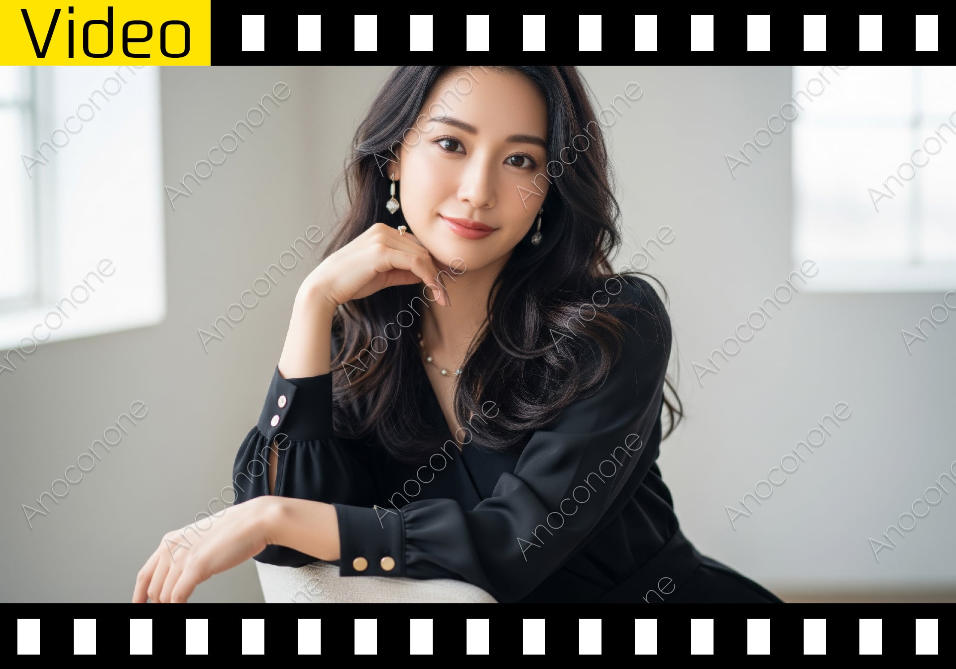 動画素材:洗練されたモダンな室内で、椅子を逆向きに使いゆったりと腰掛ける黒いドレス姿の女性を捉えた映像です。彼女の穏やかな微笑みと、丁寧にセットされたウェーブヘアが、落ち着いた大人の色香とエレガンスを漂わせています。耳元で揺れるイヤリングや繊細なネックレスがアクセントとなり、シンプルながらも高級感のある構図に仕上がっています。柔らかな光が彼女の表情を優しく包み込むこの素材は、ハイエンドなファッションブランドのプロモーションや、大人の女性のライフスタイルをテーマにした広告、美容系の映像コンテンツに最適です。