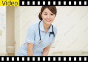 動画素材:明るい病院内で、水色の清潔なユニフォームに身を包み、聴診器を首にかけながら優しく微笑む女性看護師の映像です。少し前かがみになり、患者の目線に合わせて語りかけるような温かい仕草が、医療現場における安心感と信頼を象徴しています。整えられたまとめ髪と自然なメイクがプロフェッショナルな印象を与え、背景の柔らかなボケ味が彼女の誠実な表情をより際立たせています。医療・福祉サービスの紹介映像、求人広告、または健康維持をテーマにした公共性の高いコンテンツ制作において、視聴者に強い安心感を与える最適な素材です。