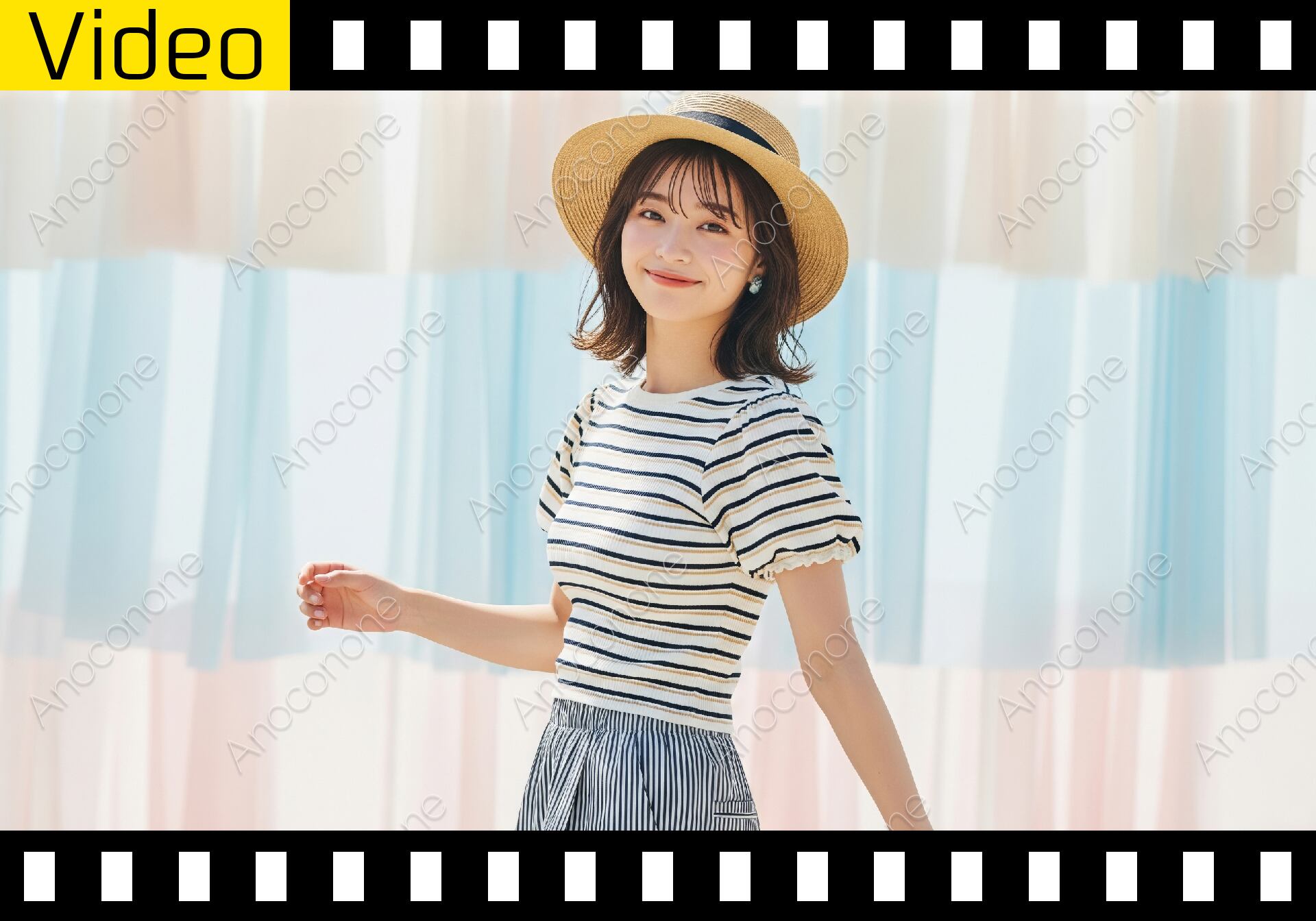 動画素材:夏らしい明るい日差しが差し込む中、麦わら帽子を被った女性がボーダー柄のトップスを着て、楽しそうにポーズを取っています。背景にはパステルカラーの柔らかな布が並び、軽やかで涼しげな雰囲気が漂います。女性はカメラに向かって元気に手を振ったり、帽子のつばに手を添えたりしながら、爽やかな笑顔を見せています。肌の質感や服のディテールまで鮮明に映し出されており、清潔感のある映像に仕上がっています。全体的に明るいトーンで構成されているため、視聴者にポジティブで晴れやかな印象を与えることができます。季節感のあるプロモーション映像や、ファッション関連のコンテンツ制作において幅広く活用できる内容です。夏の旅行やレジャーをテーマにした動画制作に最適です。