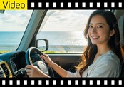 動画素材:晴天の海岸沿いを笑顔で運転するドライブ中の女性