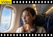 飛行機の機内に座り、窓の外に広がる青空と白い雲海を眺めている女性の様子を捉えた映像素材です。女性は窓からの光を浴びて、旅の始まりを感じさせる晴れやかで柔らかな微笑みを浮かべています。機内は落ち着いた照明に包まれており、座席の質感や機体独特の曲線が、空の旅という特別な空間を演出しています。窓の外には見渡す限りの青い空が広がり、雲の隙間から差し込む光が女性の横顔を美しく照らしています。女性の視線は遠くの景色へと向けられており、目的地への期待や旅の余韻に浸るような穏やかな時間が流れています。カメラのピントは女性の表情にしっかりと合わせられており、彼女の瞳の動きや細かな表情の変化が鮮明に描写されています。全体的に清潔感のあるトーンでまとめられており、視聴者に旅の楽しさや開放感を抱かせる構成です。旅情を誘う自然な仕草が、見る人の心に優しく響く映像となっています。